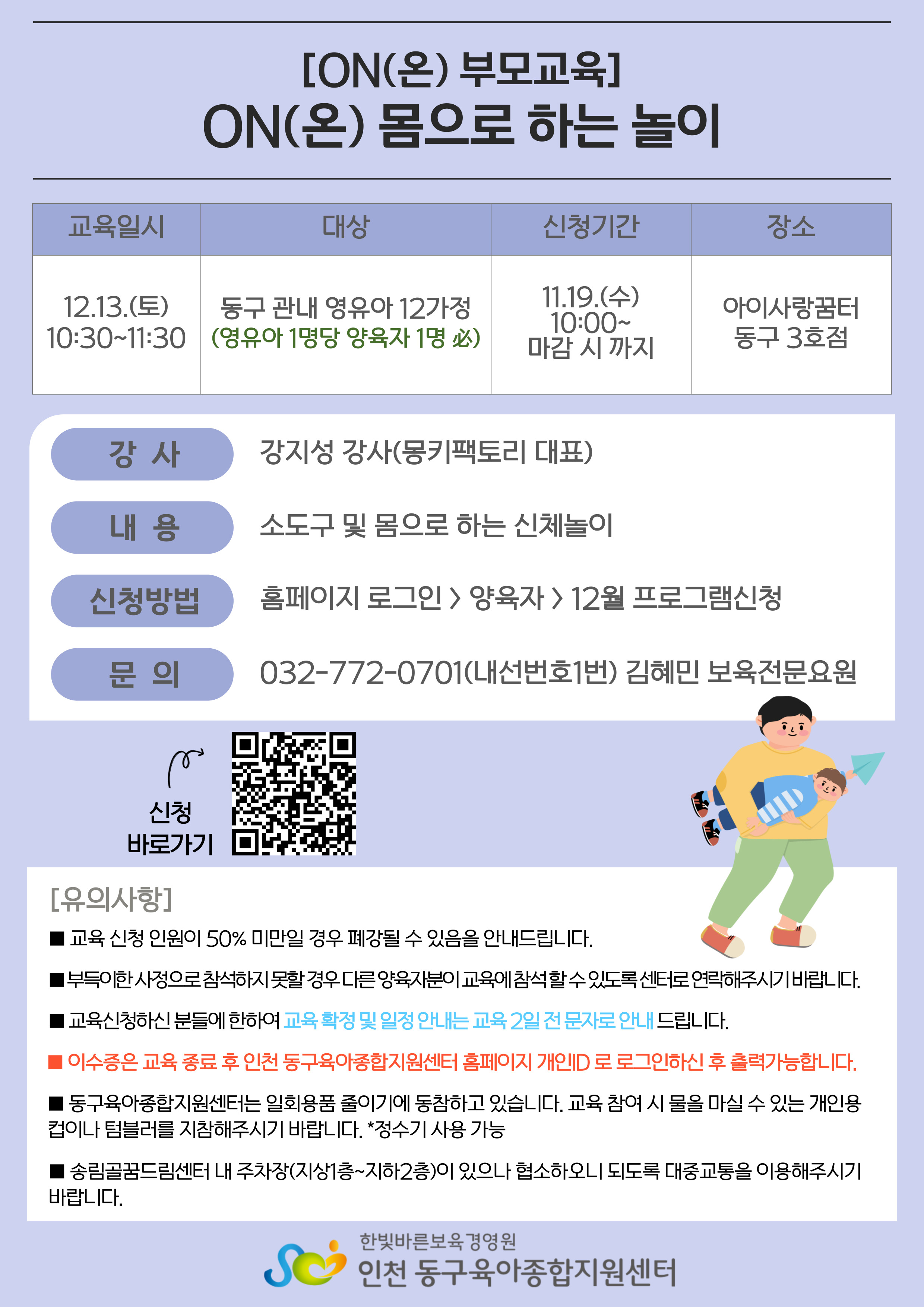 ※원활한 교육 진행을 위해 양육자 1명당 영유아 1명 신청 필수 입니다! 확인 후 신청해주시기 바랍니다!