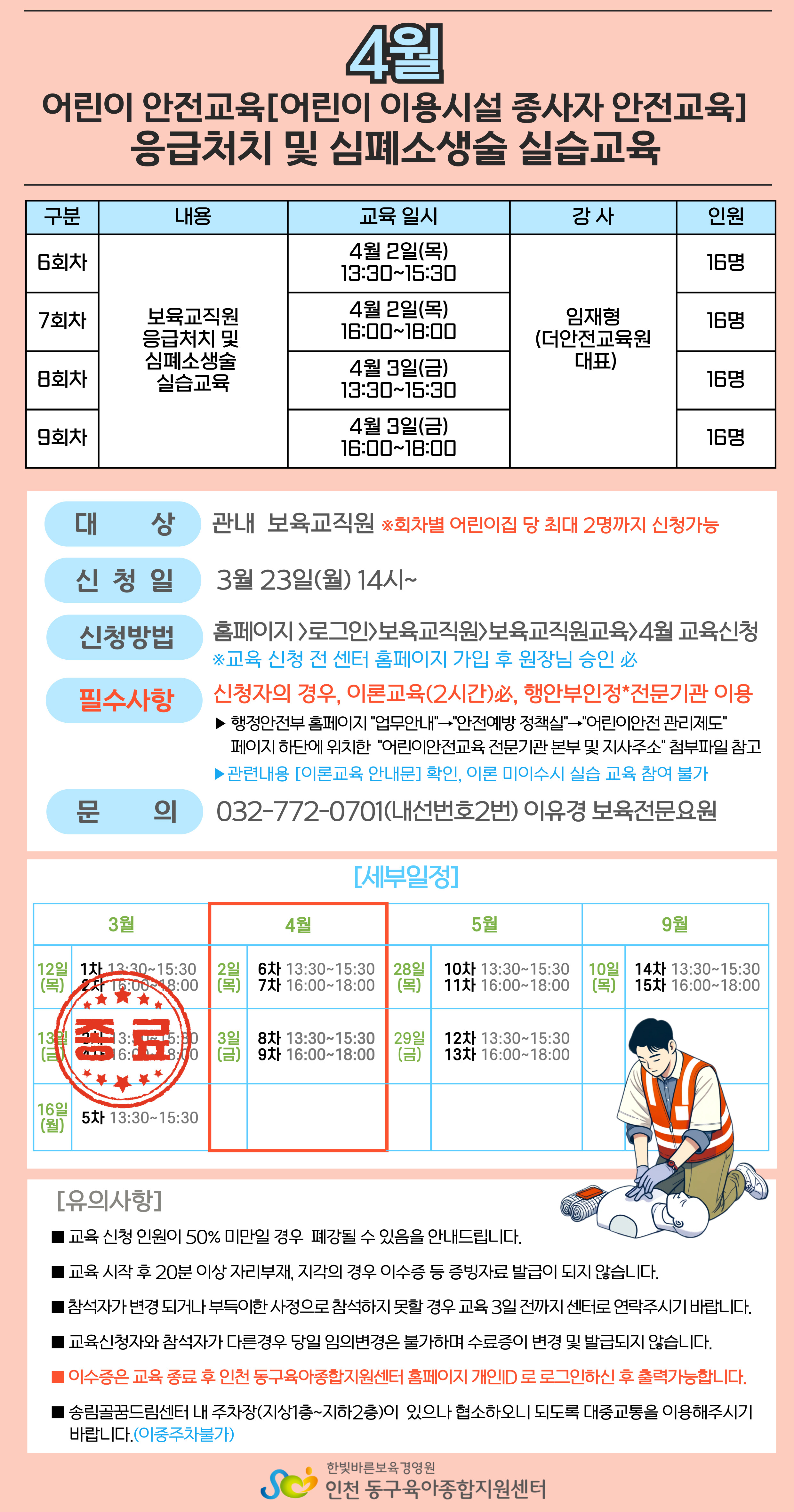 교육장소 인천 동구육아종합지원센터 교육실 교육대상 관내 보육교직원
