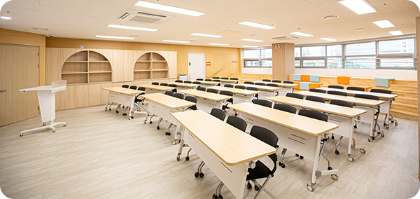 | 교육실 | 상담실 | 사무실 | 직원휴게실 | 자료실 |
