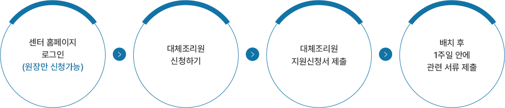 조리원 배치 완료 후 일주일 이내 대체조리원 지원확인서 및 대체조리원 설문지를 작성하여 업무연락으로 회신해주시기 바랍니다.